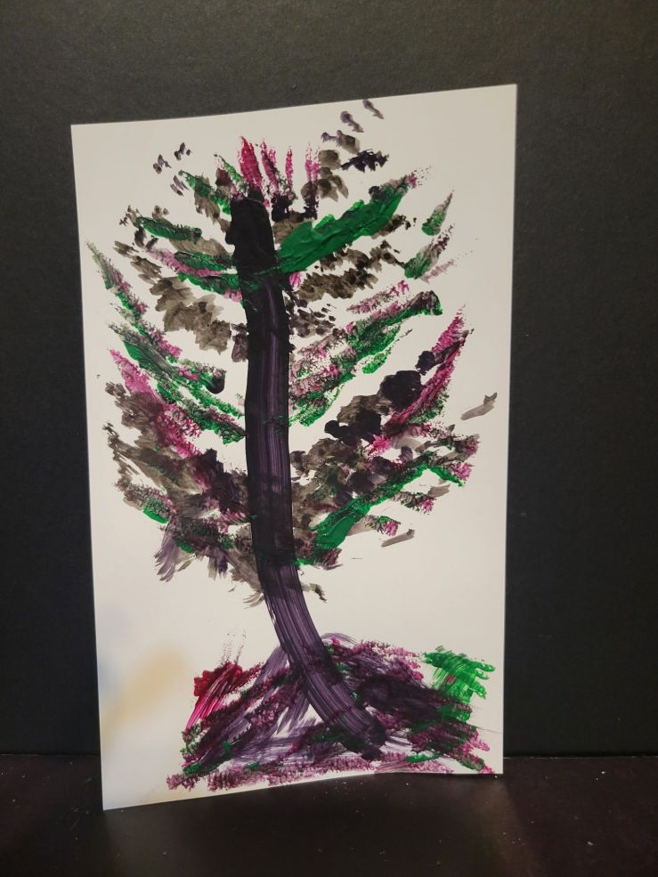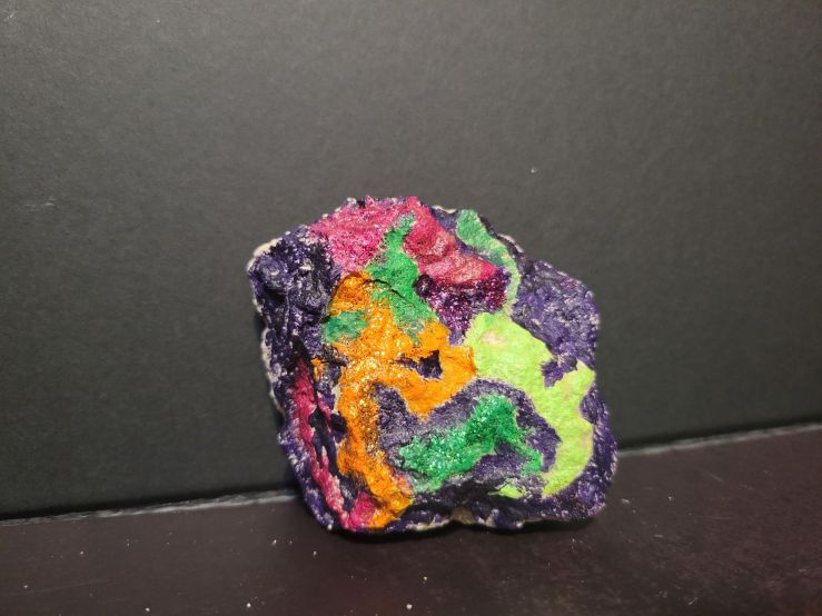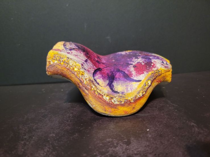 Nine months ago, my mother passed away, and while I was sorting through her belongings, I found a box that she kept of her sentimental items. It was at this moment that the creative thoughts started flowing. I found myself having ideas for shadow boxes by adding some of my mom’s items. I actually made three and gave them away as gifts. The fact that I shared them with anyone was a miracle, and I felt very vulnerable. At the same time, it felt very liberating. Since then, I have been experimenting with painting (trying to channel Bob Ross in my own way), and I have started with rocks.