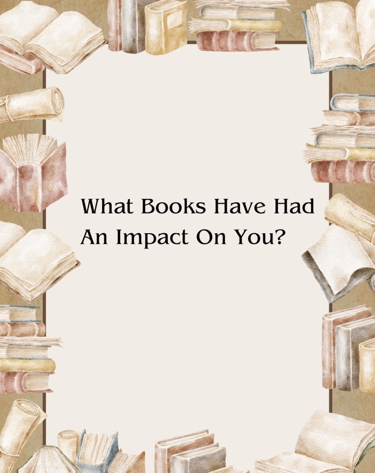 I still need to ponder this question because I know I need to add many more books to this list, but in the meantime, I ask you what books have impacted you?