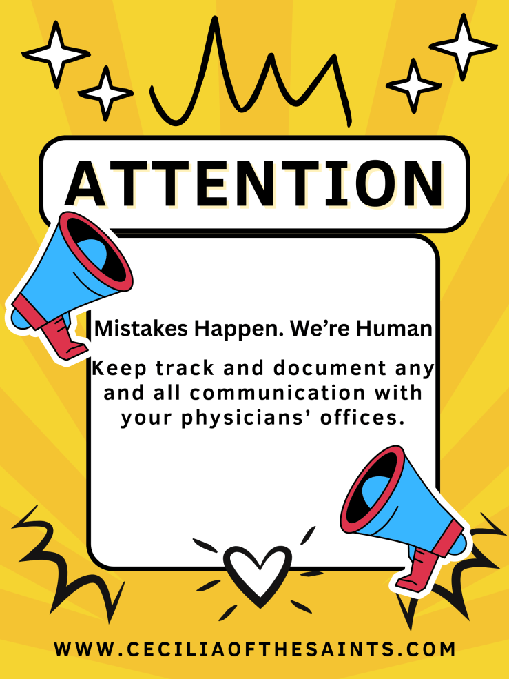 A couple of days went by, and I received a call from the Rheumatologist’s Nurse Practitioner, concerned about the new medication I was taking. She kept stating the name of it, and I was not recognizing it, and I kept telling her that the name she was referring to was not the same as the one on the bottle. Finally, after I again spelled out the medication name on the bottle, she realized that we were not talking about the same medication. It was determined that the individual from their office who took down my initial message had written down the incorrect medication name. The one they wrote was a medication that is stronger and used to treat Rheumatoid Arthritis. The doctor did not understand why my Neurologist would prescribe that for me since I was not diagnosed with that. That raised a red flag for them, so that was the reason for their call to inform me of their concern and that they were going to be contacting the Neurologist for clarification.