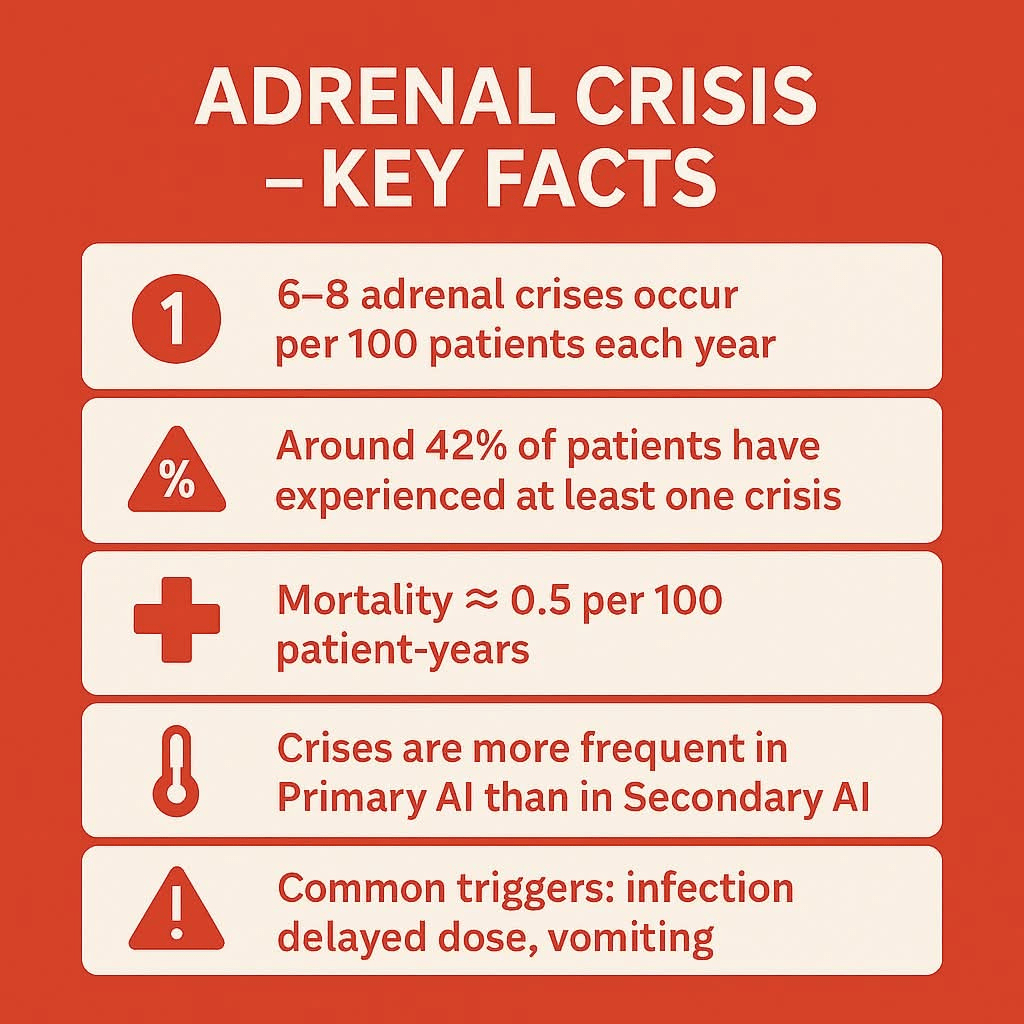 This information was shared by an Adrenal Insufficiency Facebook support group that I am a member of. I wanted to share this because I have Secondary Adrenal Insufficiency. I do not think I can put an amount on how many instances I have experienced an adrenal crisis. I truly believe I have lost count, but maybe between fifteen and twenty over the last eighteen years. I was diagnosed with Secondary Adrenal Insufficiency in December 2007, and managing this disease has been one of the toughest battles I have ever fought and will continue to fight because this is for life.