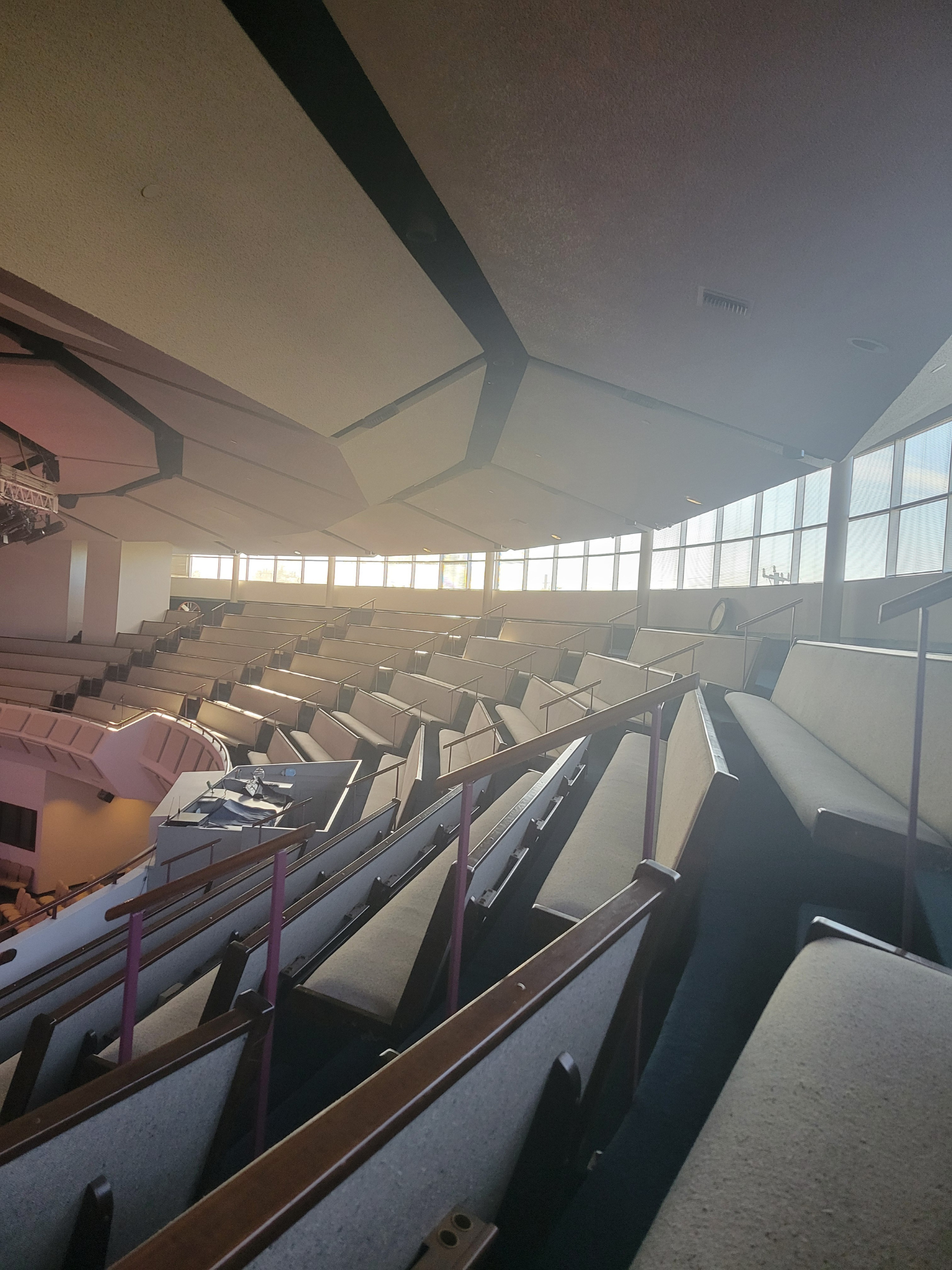 It was not until recently that I thought about sitting on the balcony because the original pews were still up there. The pictures attached to this post I took when I first sat upstairs. As I sat there looking around, I felt a flood of memories come over me. Memories from more than 30 years ago, a different time, place, people, atmosphere. I sometimes struggled, feeling like I was back in school, where I wanted to be part of the “in” crowd. Looking back, it was the most ridiculous thing to feel that way, and the lengths I would go to feel seen and acknowledged. A desperate need to feel like I have friends. I am embarrassed that I even felt and acted that way. During this moment, good memories also made their way in and, most importantly, comfort. I felt so at peace sitting there that I texted these photos to one of my previous Youth pastors that I had during that time. I felt the need to share with someone who could relate and possibly they would have a flood of memories and mixed emotions upon looking at the photos.