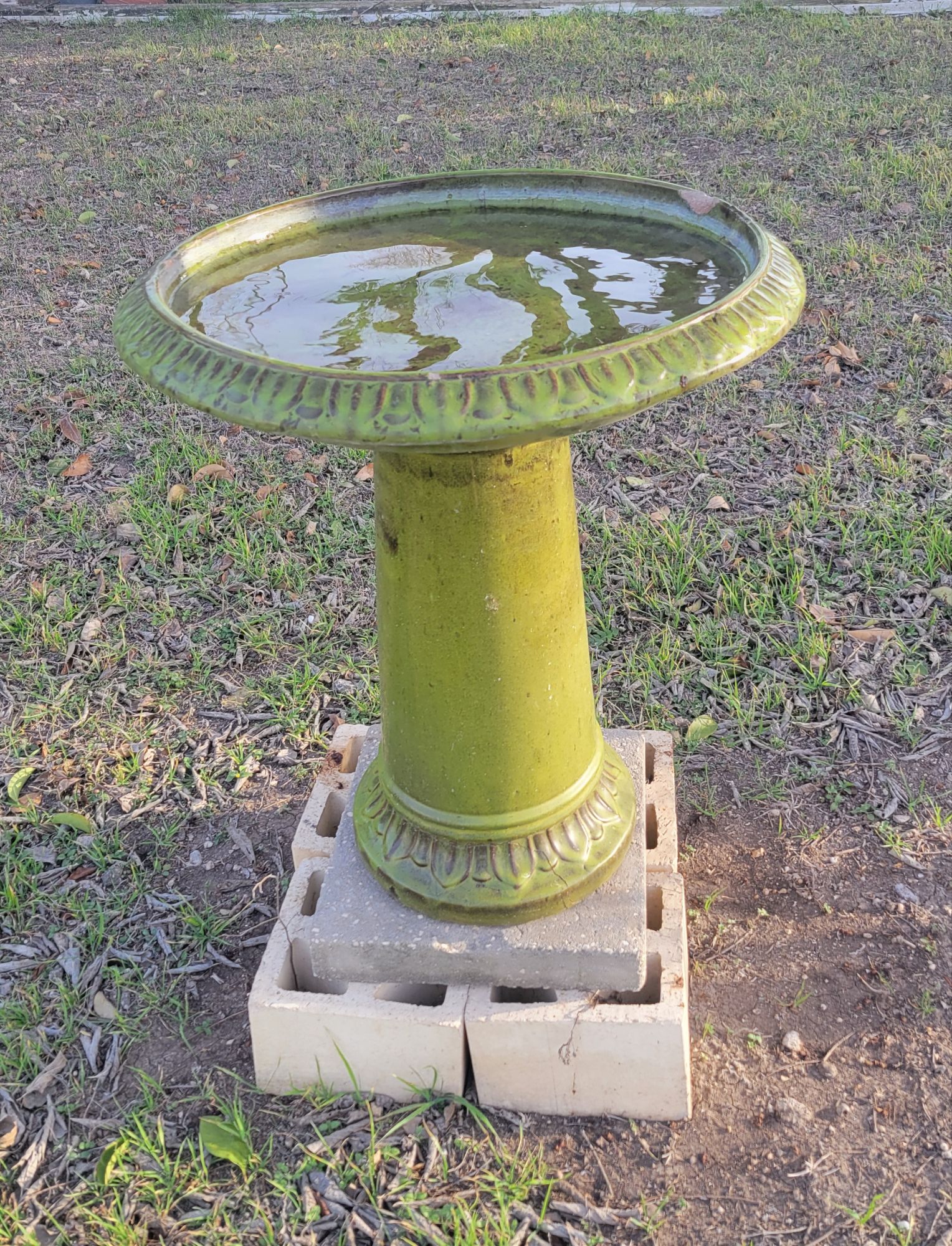 My mom would constantly clean out the original birdbath which was white in color. She would get comet and literally scrub it down and rinse it out until it was to her liking. The time came when she or my dad were not physically able to fill the birdbath or put out the birdseed, so I took over the job. I told myself I was not going to clean out the birdbath like she did with Comet.